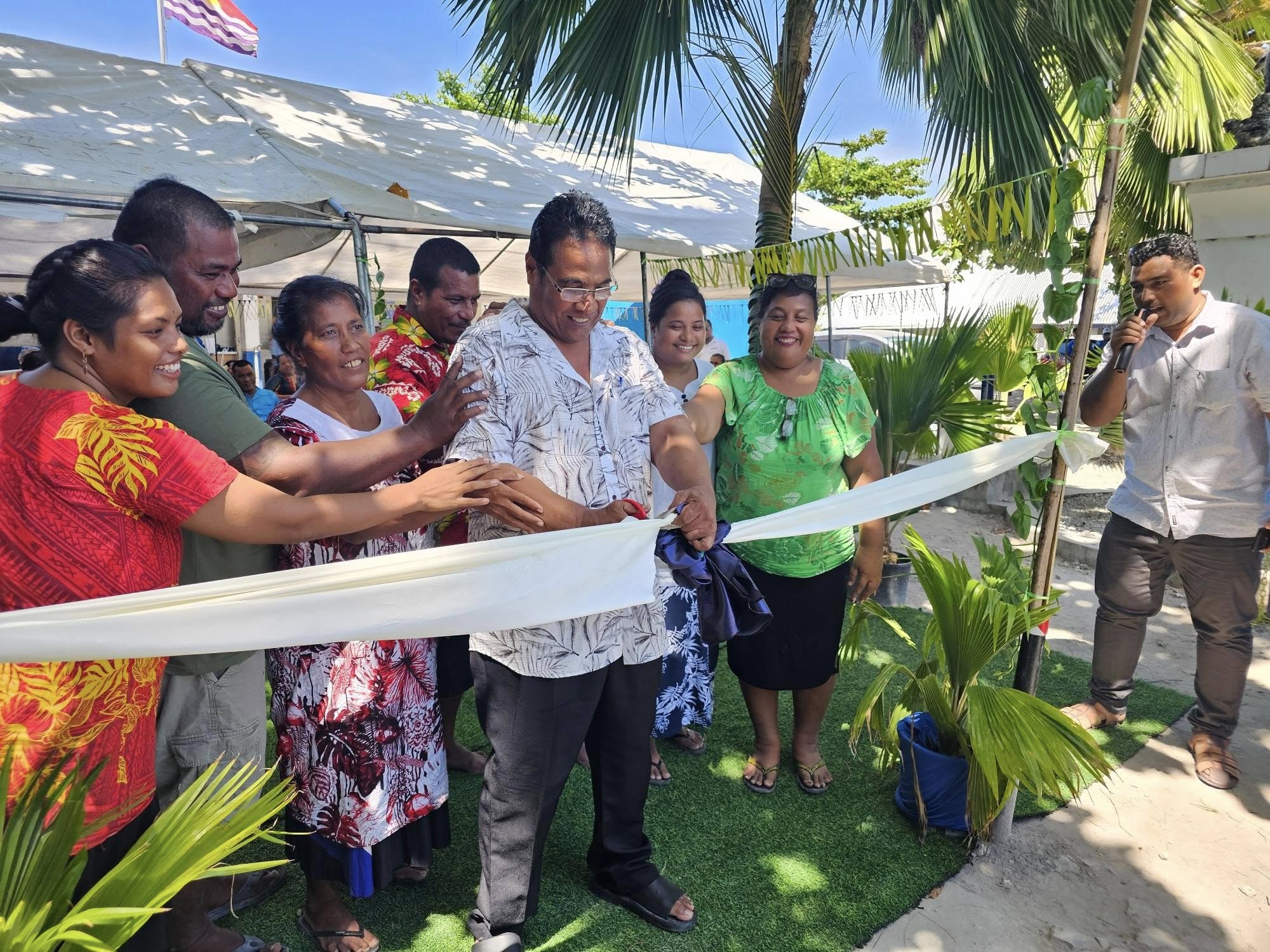 The fate of local artisanal fishermen and their markets alongside the road on South Tarawa will be transformed through the introduction of new state of the art fish vendor units that fitted with refrigerated freshness displays, solar lights, standby power banks, drainage systems and a comfortable mini-containerized unit. These 5 new fish vendor units were launched today, 26th June 2025, at the TUC Teaoraereke with the selected groups of 8 local fishermen owners from Teaoraereke village. These 8 selected will pilot the operation of these new fish vendor units, in close collaboration with TUC council and the Competent Authority team from the Ministry of Fisheries and Ocean Resources. Secretary Riibeta Abeta in his launching remarks; congratulated TUC Mayor and the new owners of these fish vendors for being the pioneers of this project. These vendor units will showcase the new way of selling hygienic and high-quality local fish products in South Tarawa. These units were also blessed spiritually by Father Mataio from the the catholic church for the new users. As a pilot project, each fish vendor unit costs around AUD$6,000 which comes with a full set of refrigerant freshness display, solar panel for solar lights, power bank and a cooler to store the fish catch stock. The MFOR acknowledged the European Union through the EU Sector Support Project for the financial assistance injected to this project, as well as the assistance of suppliers from China and local contractors involved in making this ground-breaking project a reality.
