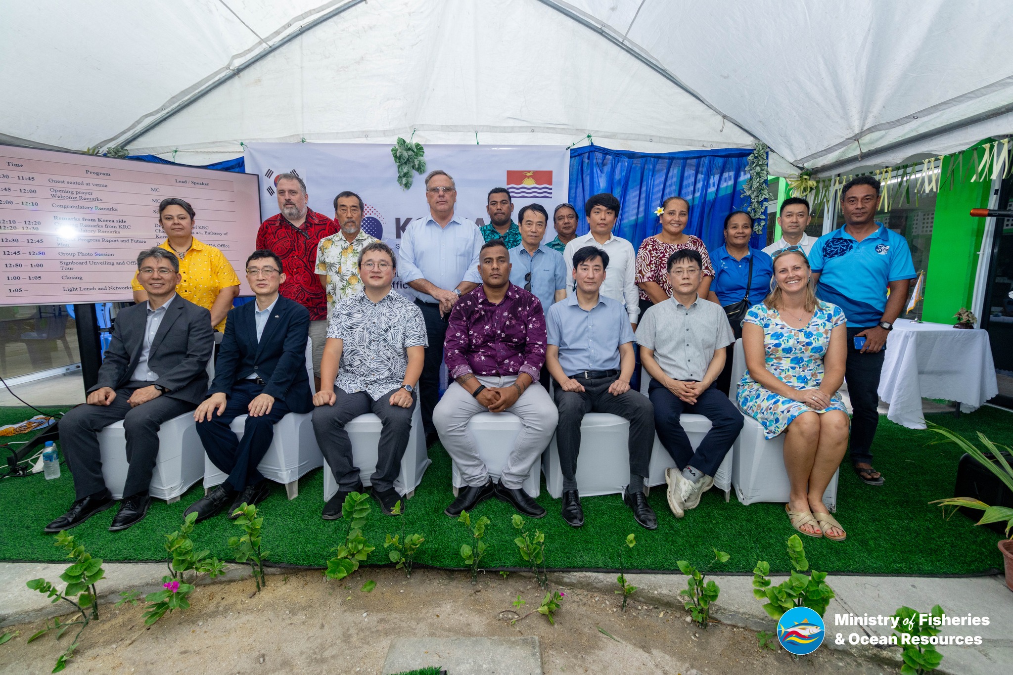 The new Korea ODA Office at the KPF Complex, Bairiki, Tarawa was today, 19 November 2025, officially unveiled and opened by Mr Kim Myong-jun, Charge d Affaires for the Embassy of Korea in Fiji, Mr Kim Sung-Kyung, Director General for Korea Rural Community Corporation (KRC) of the Ministry of Ocean and Fisheries (MOF), Korea and Mr Riibeta Abeta, Secretary of the Ministry of Fisheries and Ocean Resources, Kiribati. This new office space will house our Korean counterparts from MOF ODA and the KRC who will be based in Tarawa, Kiribati, to undertake the implementation of the South Korean funded Fisheries Community Development Initiative for Sustainable Fishing in Kiribati. This is the first major South Korea’s flagship development project in Kiribati of around US$12.2 million, and will cover the upgrading of the Bairiki Wharf, the establishment of a new Fishermen Training Centre in Tanaea and a capacity building program. With the launch of this new Korea ODA Office, work will now begin, and all infrastructures are expected to be completed by 2029. The Government of Kiribati, through Secretary Riibeta of the Ministry of Fisheries and Ocean Resources (MFOR) congratulated the partners for this milestone and conveyed Kiribati’s sincere appreciation to the people and Government of Korea for their generous assistance with supporting these major development projects in Kiribati.