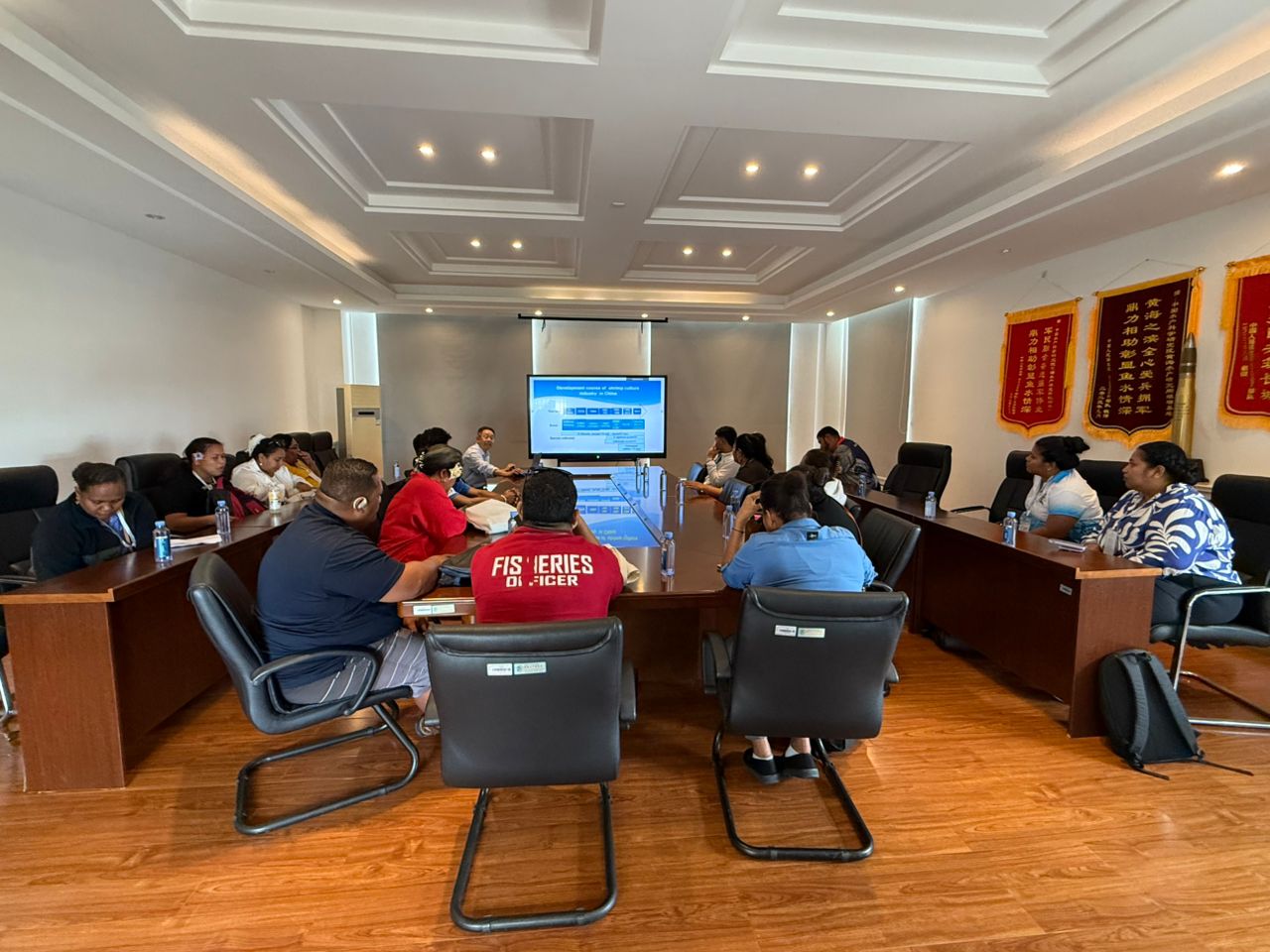 'The Foreign Economic Cooperation Center, Ministry of Agriculture and Rural Affairs, of the People’s Republic of China organized a Seminar on aquatic product storage and processing techniques for pacific island countries. In which official from the KSVD and CFD, a division of the Ministry of Fisheries and Ocean Resources and a staff from Ministry’s State-Owned Enterprise, CPPL, had the privilege to attend this important Seminar. The Seminar was held from the 19th to 30th September 2025. Providing insights knowledge towards achieving a sustainable fisheries development by covering essential topics on processing technique, product diversification and cold supply chain of aquatic products using advanced technology, for ensuring the production of a high standard and quality aquatic products for the global market. The participants had also the opportunity to visit fisheries research institutions, aquatic processing facilities, exhibition center, aquarium center, aquaponics farm, aquaculture facilities and farms at Guangzhou City and Qingdao City in China. This seminar had provided a learning experience and networking opportunities for fisheries officers from the pacific island countries especially Kiribati. The Ministry of Fisheries and Ocean Resources, convey it sincere appreciation to the Government of China through the Ministry of Commerce of the People’s Republic of China for the funding support, and to the Foreign Economic Cooperation Center for organizing a successful and most important seminar for pacific island countries.