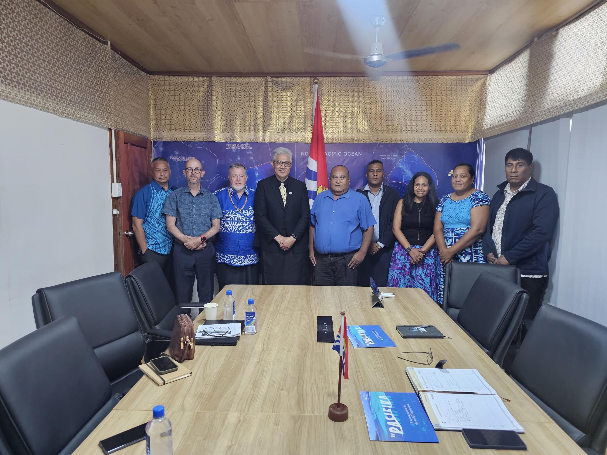 A productive discussion on areas of future collaboration was held today, 12 February 2026, at the MFOR Headquarters in Bairiki between Secretary Riibeta Abeta of the Ministry of Fisheries and Ocean Resources and the team from Live and Learn Kiribati. Live and Learn is a reputable and recognized NGO operating across many Pacific Island countries. The organization has a small office in Tarawa and supports grassroots communities on critical issues such as food security, climate change, and marine resource management, among others, in close collaboration with Government agencies. There are exciting areas of shared interest between Live and Learn and MFOR, including Marine Spatial Planning for Islands, which warrants further engagement and partnership in the future. MFOR acknowledges the team from Live and Learn for their active work with the communities of Kiribati and looks forward to future collaborations.