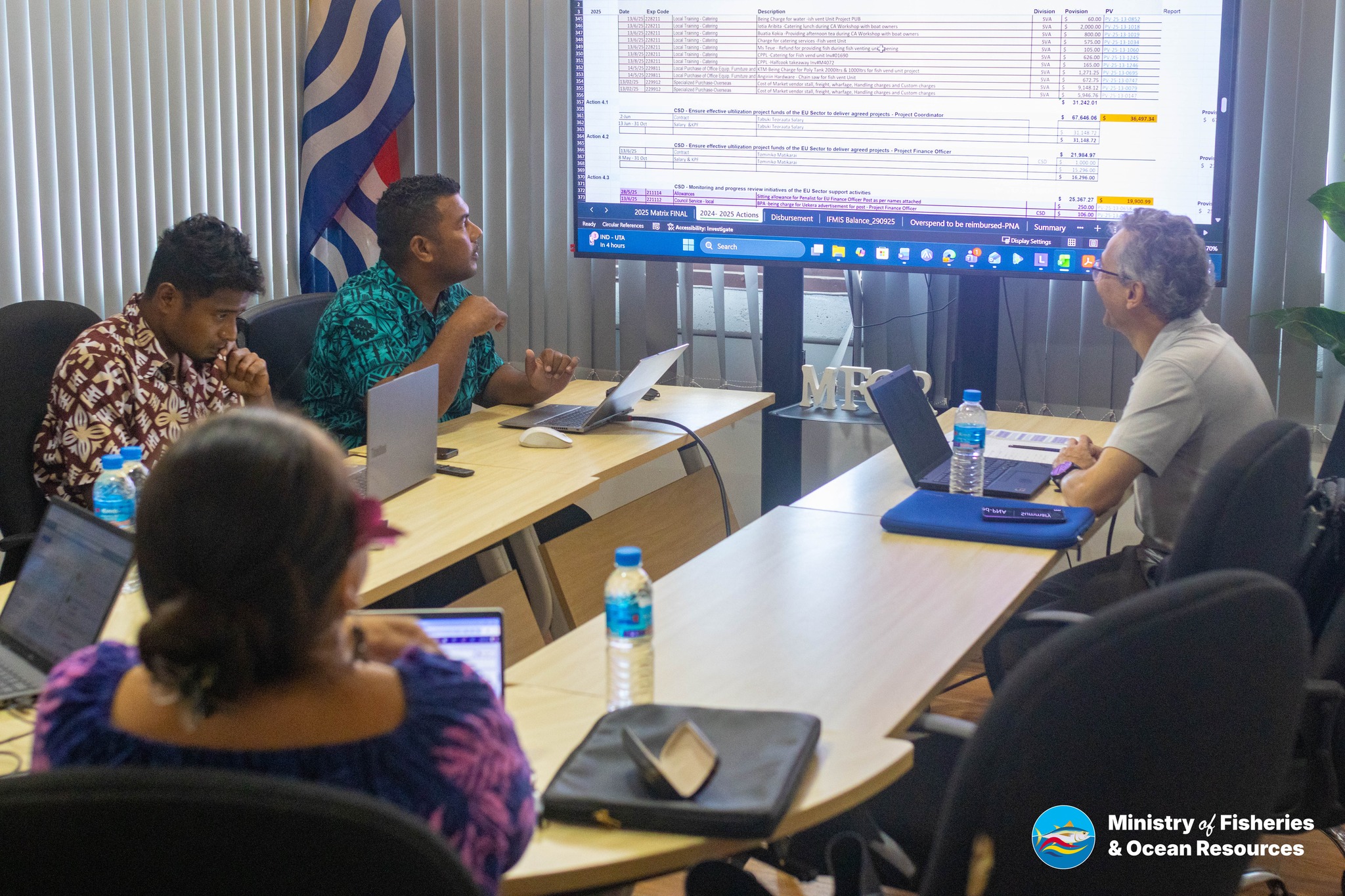 The European Union Inspection Mission visited Tarawa from 11 to 14 November 2025 to assess progress toward the 2025 Matrix targets, activities supported under EU Fisheries Sector Support Programme. The mission aimed to provide guidance to ensure adherence to protocol guidelines throughout the implementation of various initiatives. Upon arrival, MFOR hosted a gracious welcome dinner reception at the MFOR Maneaba, a pivotal project supported by the programme in 2024-2025. In her welcoming remarks, MFOR Officer in Charge/Deputy Secretary Teue Baikarawa expressed heartfelt appreciation to the European Union for its continuous support under the Fisheries Partnership Agreement (SFA) – Sector Support component. This assistance plays a crucial role in bolstering MFOR's efforts to implement initiatives that significantly enhance the livelihoods of local communities. Under the current fisheries protocol, MFOR remains steadfastly committed to cultivating a robust long-term partnership. The mission also works with the EU project team and conducts tours of various project sites, including Fish Vending Units, the Tanobakoa Coastal Clean-Up Site, MFOR Maneaba, and the Maiana Mini-Hatchery. With over 3,000 clams cultivated at the Maiana Hatchery, the EU representative encouraged MFOR to ensure streamlined access to international markets so that the project can yield substantial benefits for the island residents.