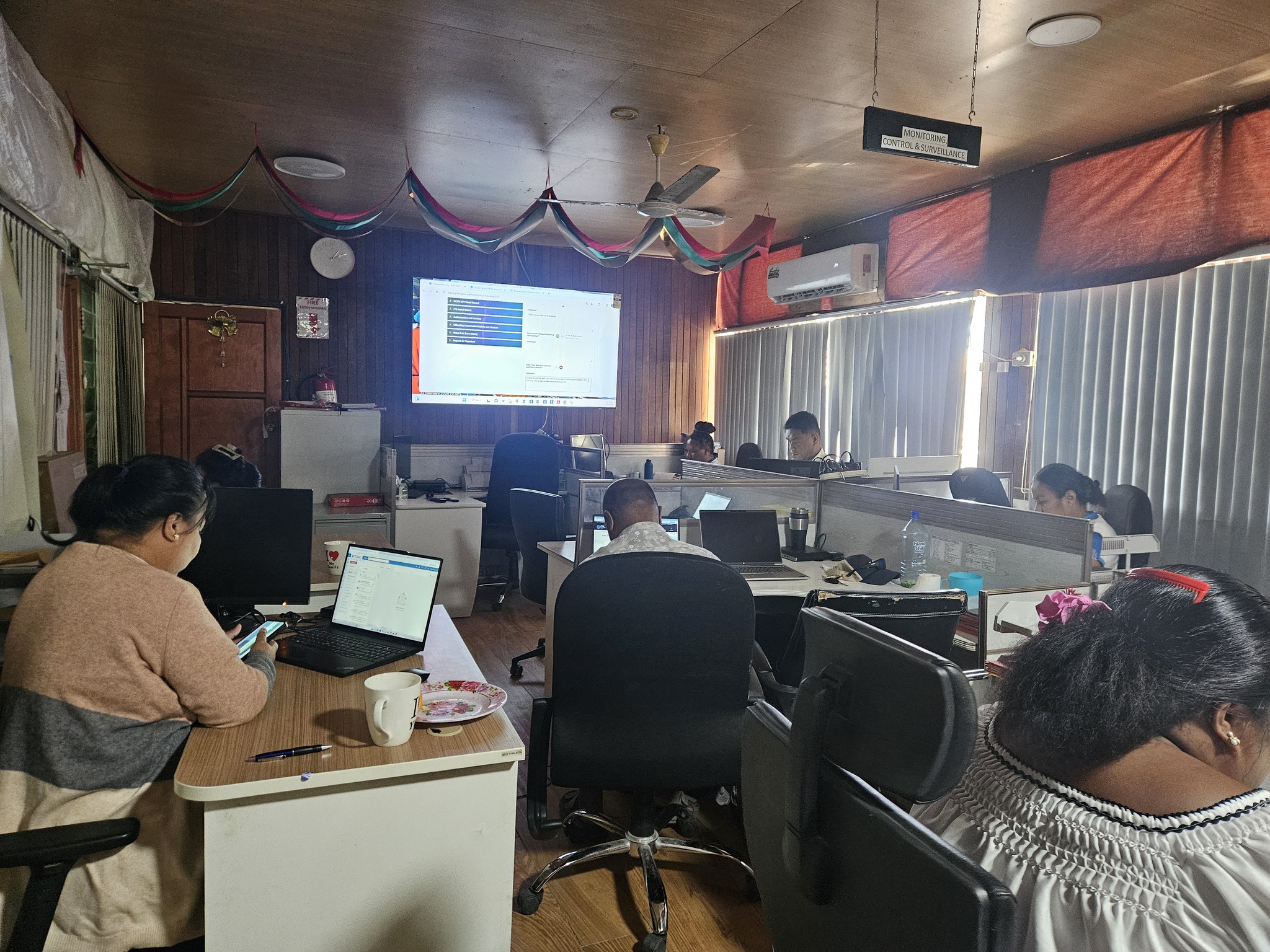 The FAO mission visited Tarawa from 25–27 November 2025, led by Fisheries and Aquaculture Specialist Anne Maree Schwarz and Aquaculture and Mariculture Specialist Ruth Garcia Gomez. The visit aimed to assess the status and challenges of aquaculture in Kiribati, review the completed TCP/SAP/3904 project, and introduce the new TCP/SAP/4006 initiative. A workshop on 27 November brought together officials from MFOR, the Agriculture and Livestock Division, and Atoll Beauties Aquaculture Farm. Director of PDD, Ms. Taati Eria, expressed strong support for the new project while highlighting logistical issues from past activities under FAO. Participants discussed priority areas to strengthen aquaculture development. The FAO team, accompanied by National Mariculture Consultant Temama Toaiauea, also visited key aquaculture sites including the KIFL milkfish cages, MFOR’s milkfish nursery at Ambo, Atoll Beauties, Tanaea Hatchery, and the Temwaiku milkfish ponds. The mission concluded with an acknowledgment dinner hosted by MFOR Deputy Secretary Mr. Tieri Tamoa, who expressed appreciation for FAO’s continued support. DS Teue Baikarawa also stressed the need to plan the next steps for seaweed development following the completion of the previous project.